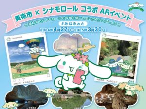 美祢市でシナモロールと写真を撮って 思い出をシェアしよう! チラシ(PDF) ■募集内容 美祢市の観光スポットを巡って、シナモロールARコンテンツで写真を撮って「#みねふぉと」をつけてInstagramに投稿するとシナモ … 続きを読む 美祢市 ✕ シナモロールコラボ ARイベント
