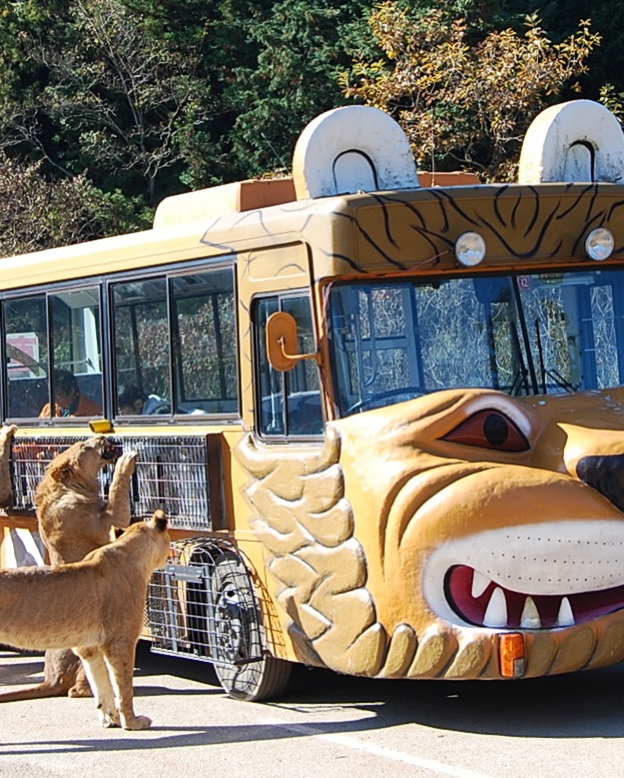 広大な自然の中で出会える、迫力満点の動物たち 大人気の「エサやりバス」では、大人も子どもも大興奮!