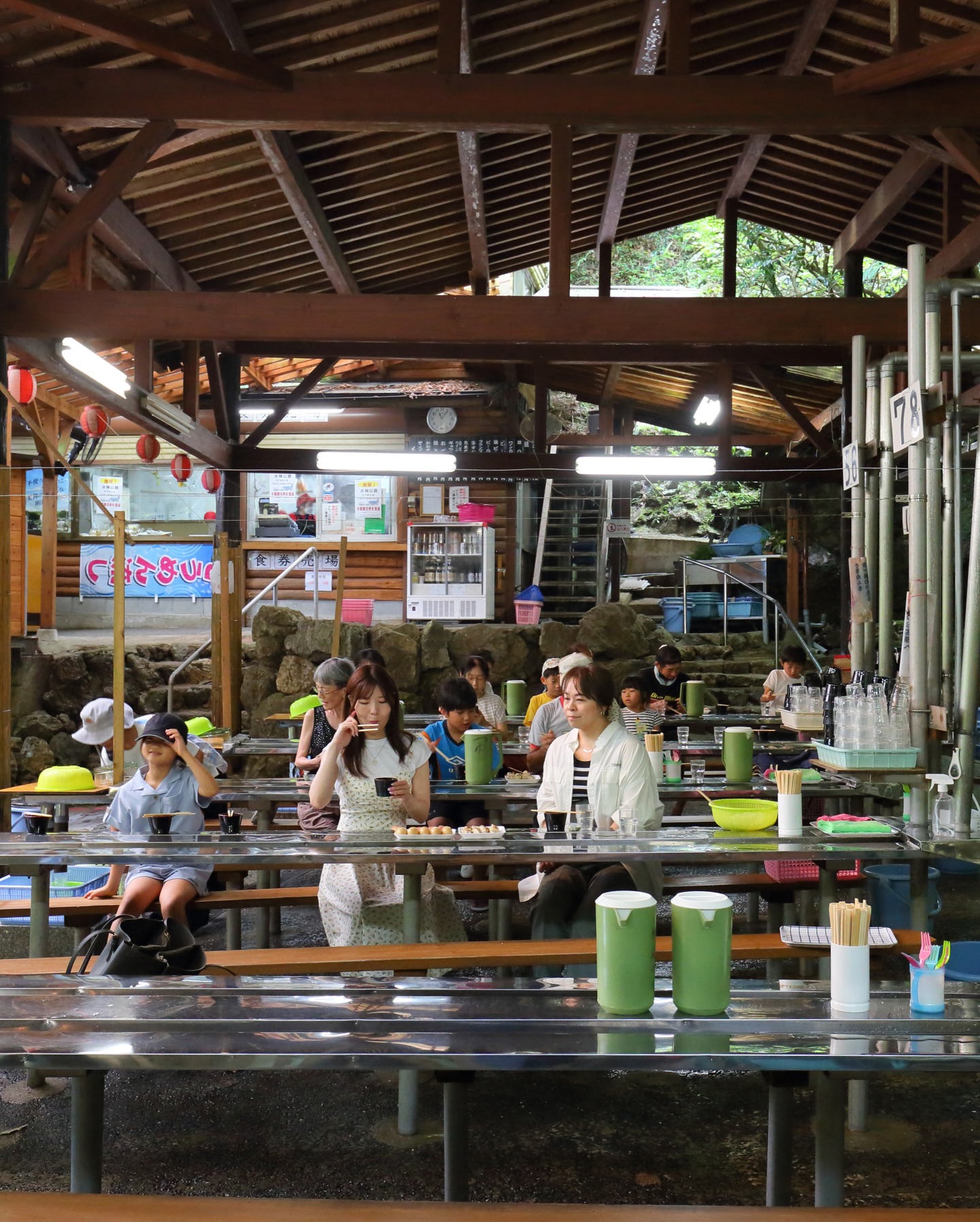 ポットに渓流沿いに広がる自然豊かな公園 毎年 7 月~9 月の夏休み期間はそうめん流しの人気スポット