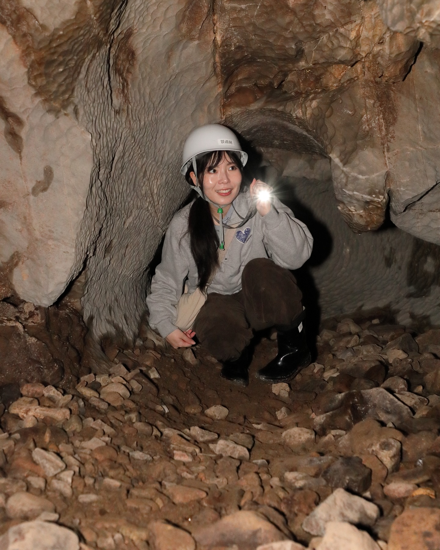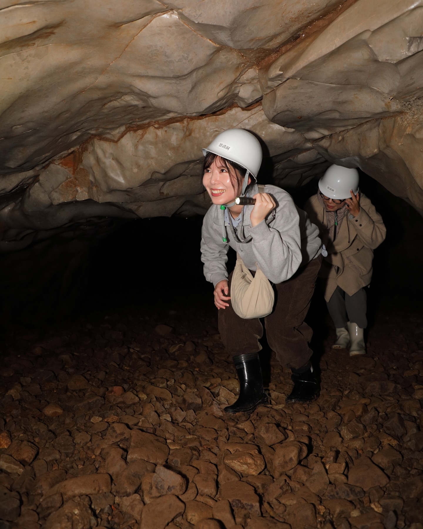 灯りのない真っ暗な洞窟を、手持ちライトだけで進むスリルはまさに冒険そのもの。