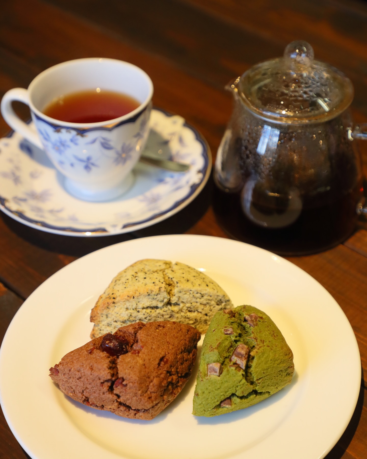 やさしい甘さのスコーンと、渋みの少ない紅茶の組み合わせにほっと癒されます。