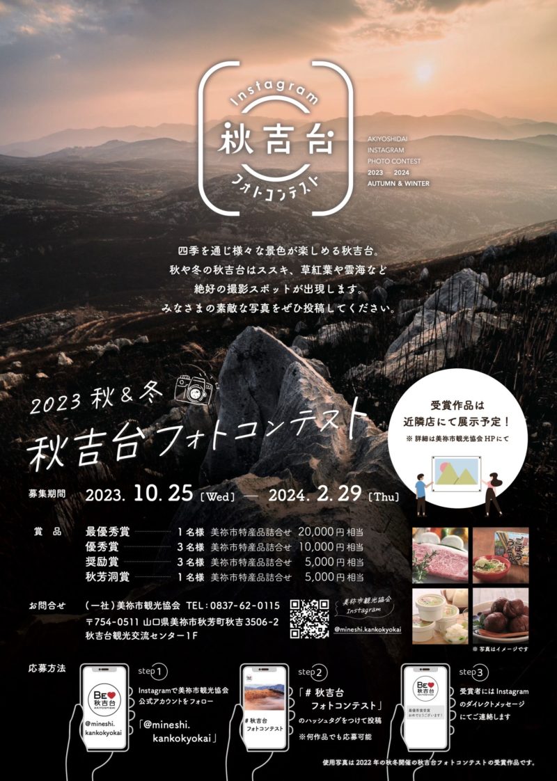 Instagramで、美祢市観光協会公式Instagram「@mineshi.kankokyokai」をフォローのうえ、ハッシュタグ「#秋吉台フォトコンテスト」を付けて、写真を投稿してください。