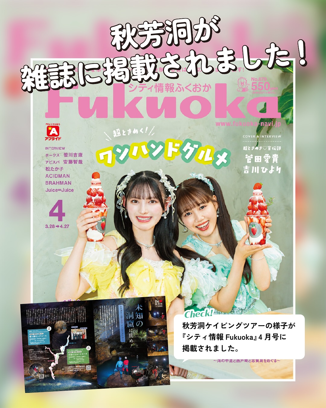 3 月 28 日(金)発売の「シティ情報ふくおか」4 月号で、「秋芳洞未公開エリアケイビングツアー」が紹介されました!