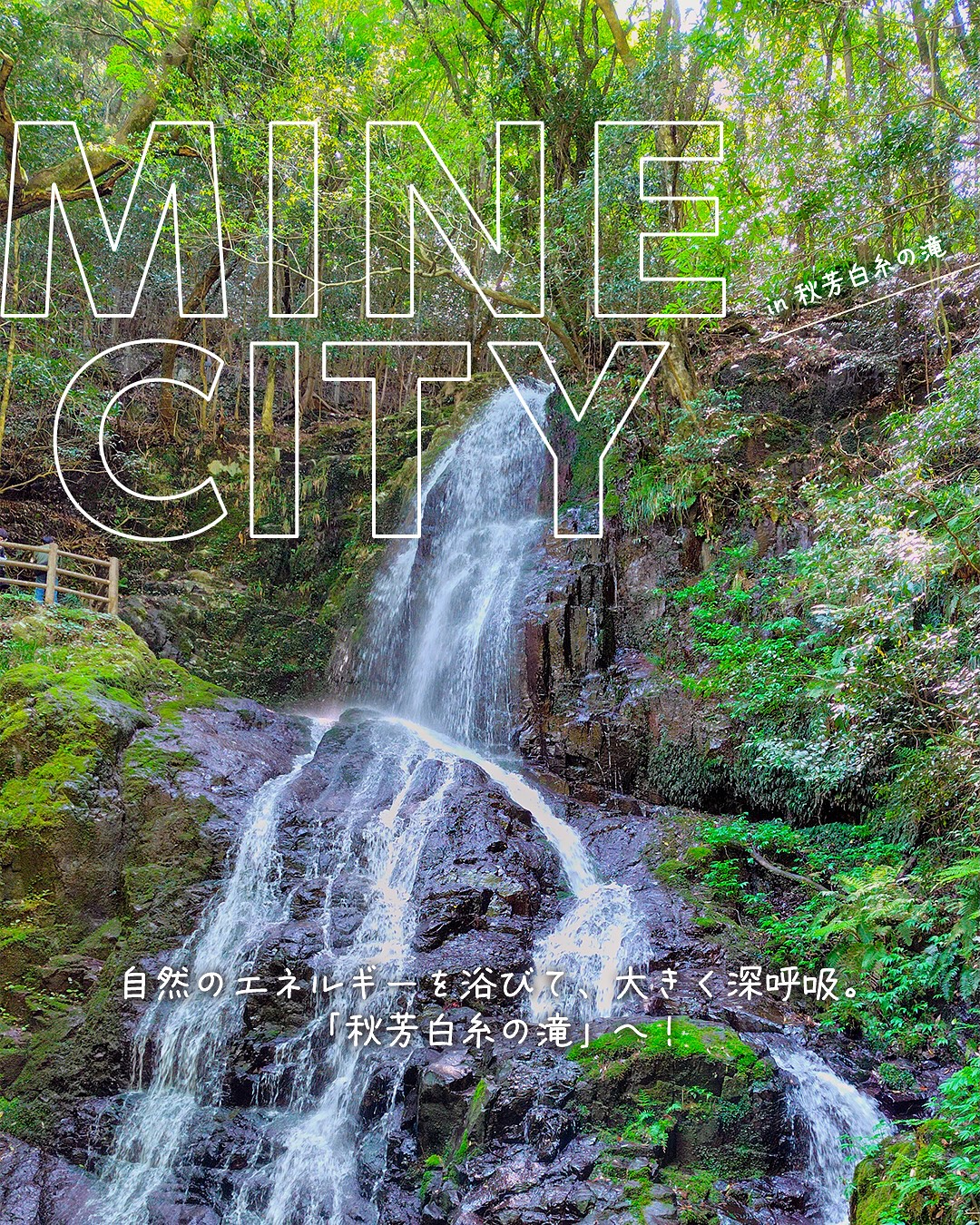 【自然のエネルギーを浴びて、大きく深呼吸。 「秋芳白糸の滝」へ!】