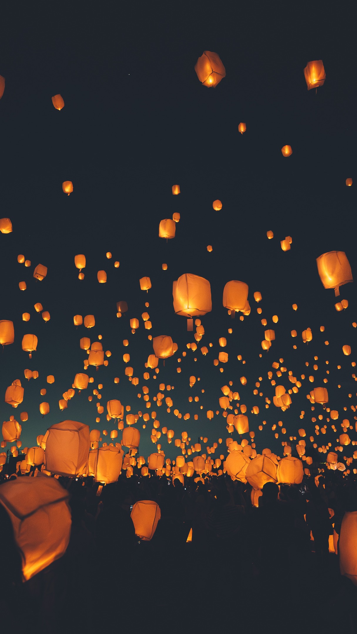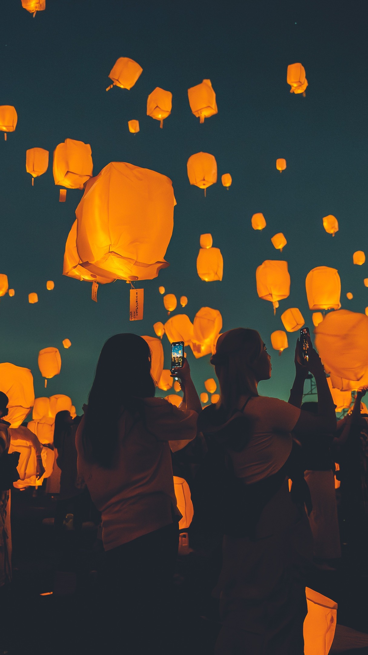一斉リリースは午後7時から😊夜空に浮かび上がるスカイランタンは幻想的。その雰囲気づくりに参加してみませんか❓